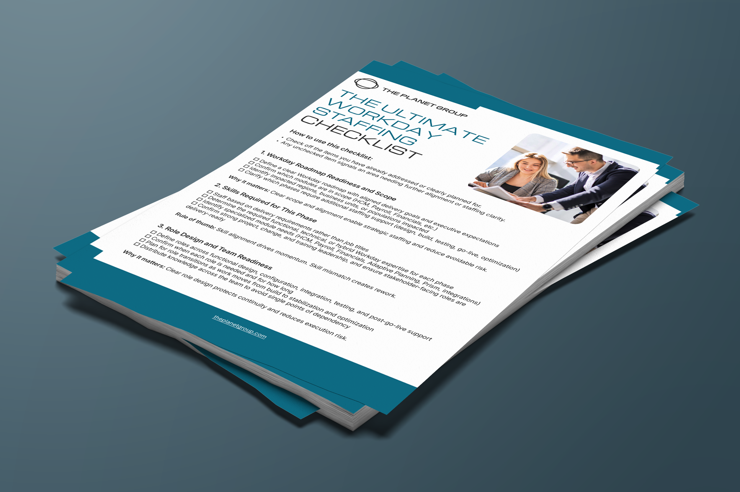 The Planet Group's Ultimate Workday Staffing Checklist helps leaders evaluate whether their team structure, skills alignment, and resourcing strategy are ready to support each phase of a Workday roadmap. By identifying potential gaps early, organizations can reduce delivery risk, maintain momentum, and scale resources more effectively as priorities evolve.